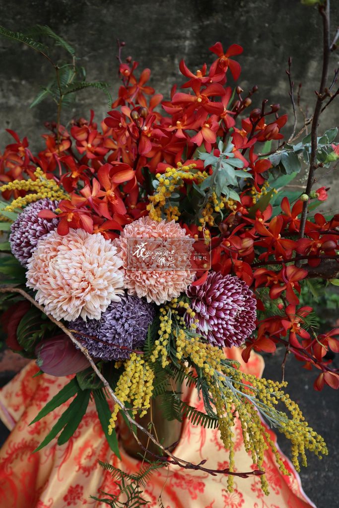 ∥花開滿圓∥ 牡丹菊盛開開滿園, 桔紅聖耀蘭掬喜慶, 金合歡閃爍在其中, 寒梅枝條拋向天際, 深深祝福在我心中。 新年萬象․皆吉祥! ------------------