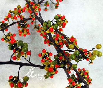 蔓梅擬 別名:蔓梅擬、蔓性落霜紅、 過山風、風藥、大芽南蛇藤、 大本南蛇藤、大本穿山龍、圓葉南蛇藤 英文名稱: 學名: 科屬名:衛矛科(Cflastraceae)南蛇藤屬(Celastrus) 原產地:台灣中南部中低海拔 花期:9-11月 插瓶觀賞期:10-20天 買花要領/線條優美.果實飽滿者佳 特色及運用/觀賞藤蔓植物.可作切花及藥用 |