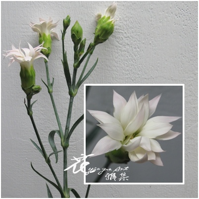 中康乃馨(火花) 色彩/ 白.粉.綠.黃.紅.桔等多色 瓶插觀賞期/ 約7~10天 買花要領/花苞飽滿已微開為佳.花莖強壯翠綠無折傷 特色及運用/新品種的康乃馨.花型嬌小可愛. |