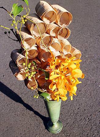 霞光萬道,日出亦是日落 轉化交錯瞬間,一體兩面 -------------------- Designer花雅集學員-O雅寧 延伸美學: http://www.yiagia.com/ #千代蘭 #迷你太陽花 #粽葉 #花藝課 #花雅集 #花藝學校