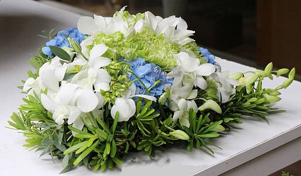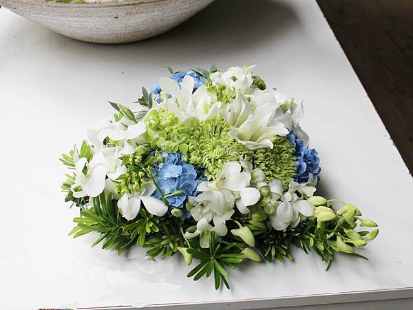 【喪禮花飾-心枕】 純潔的白佐以悲傷的藍 沉思緬懷最致愛的故者 ------------------ Designer花雅集學員-O祁 延伸美學: http://www.yiagia.com/buy/main_products.php?pid=1358&mt=1