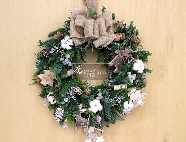 #諾貝松 #白樺木 #軟木塞 #星星綴飾 #聖誕花圈 #門飾 #鄉村風 #花藝教學 #花藝課 #花雅集 #花藝文創學校