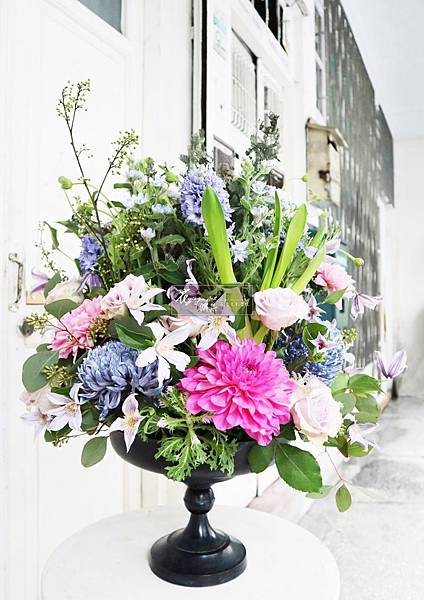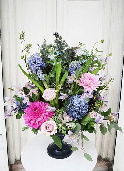 以鮮明色彩和多種花材創造出富麗的氛圍