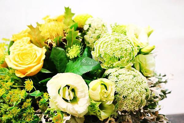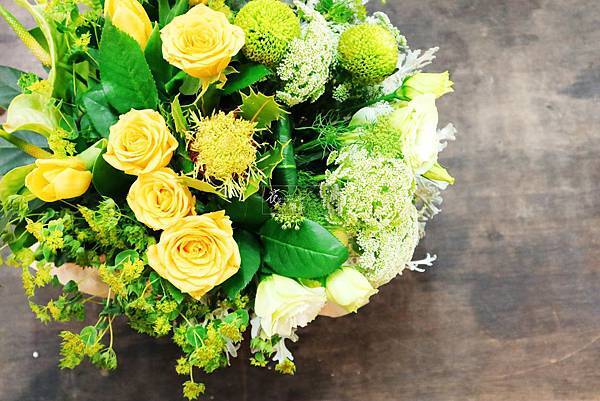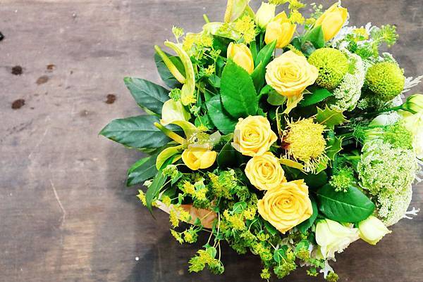 #調和#繡球蕾絲#黃玫瑰#花束#圓形#花藝課程#花雅集#