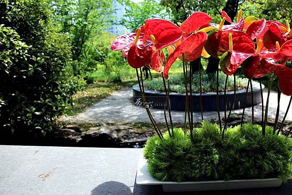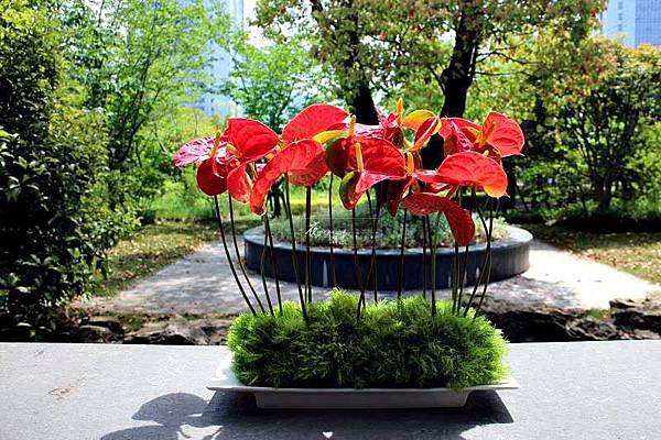 佇立在綠石竹中的火鶴 就好像 在喧囂的城市中偷得一份安寧