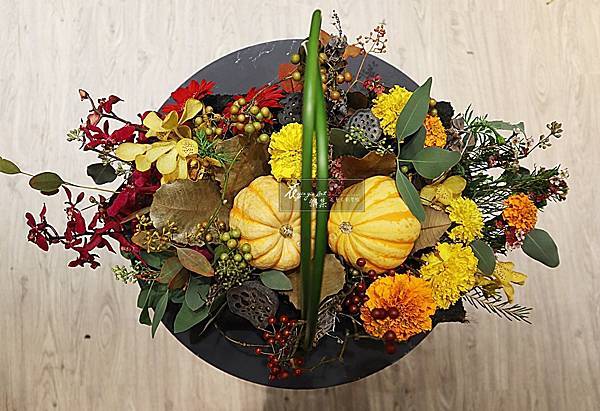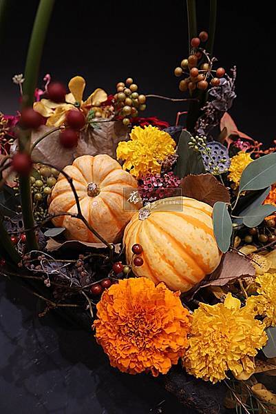 #萬聖夜的時候在南瓜內放進點燃的蠟燭#傑克南瓜燈#迷你太陽花#千日草#花藝設計#空間花設計#上海#台北#花藝學校#Art Deco #室內設計#花店裝修#萬聖節派對花禮快來訂購喔!