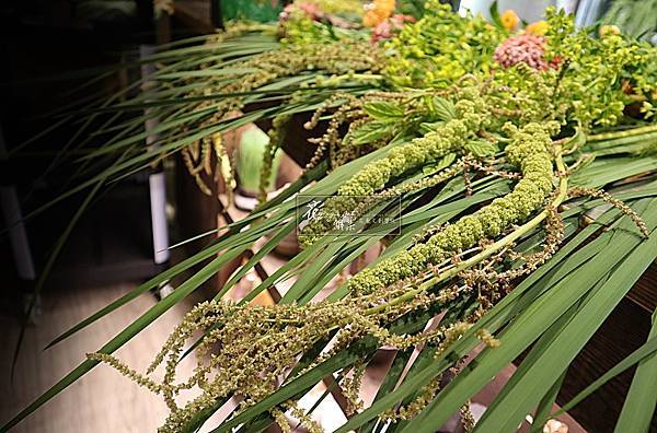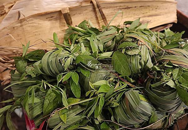 除了鮮花以外,還有應景的香蒲艾草扎及粽葉特製的艾草香包